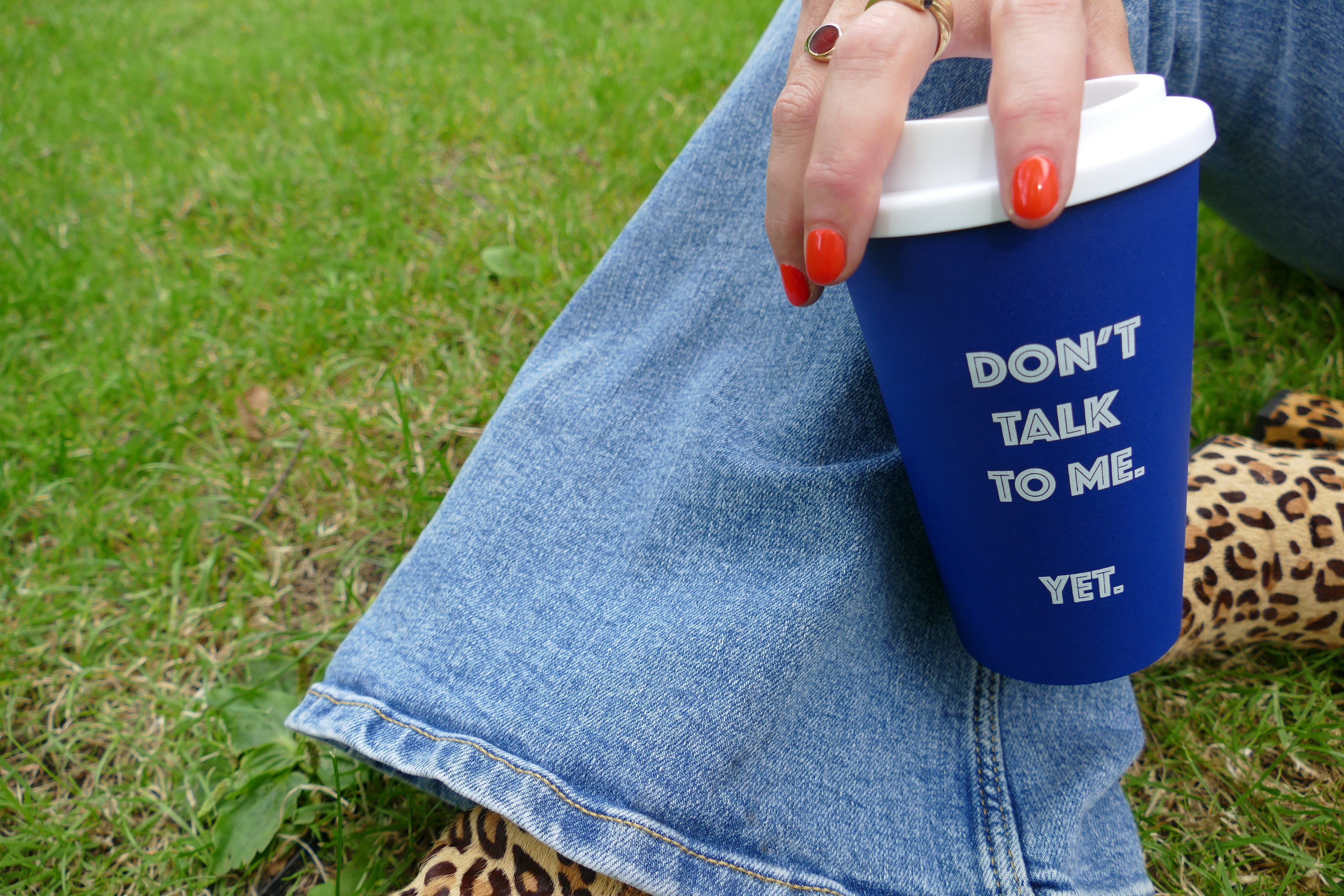 Deze fijne blauwe koffiebeker zegt wat jij denkt, nog voordat de cafeïne z'n werk doet.