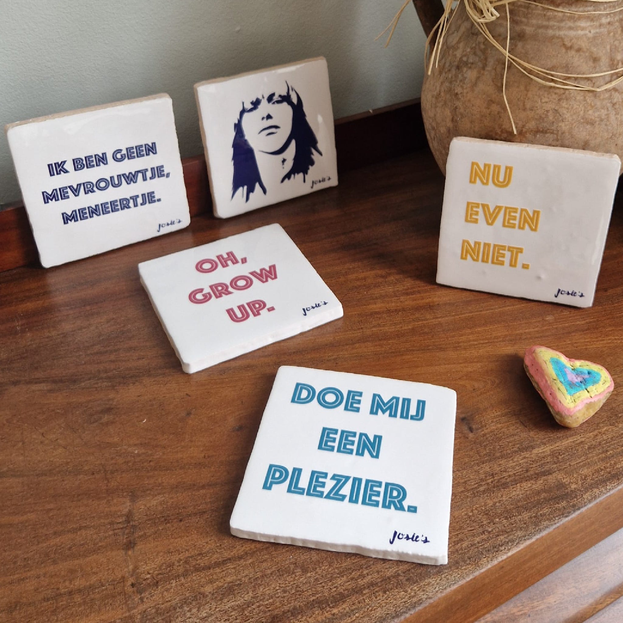De lessen die ze mij leerde, wil ik nu delen met anderen. Geïnspireerd door de stoere foto’s van Josie uit de jaren 70 én haar gewaagde uitspraken heb ik als illustrator de nalatenschap van mijn moeder vormgegeven in een productlijn.